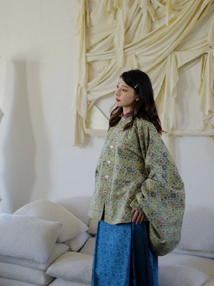 Combine Ming Dynasty patterned brocade with Ming Dynasty silhouettes, and get a one of a kind Liling Ao 立领袄 (standing collar shirt)!