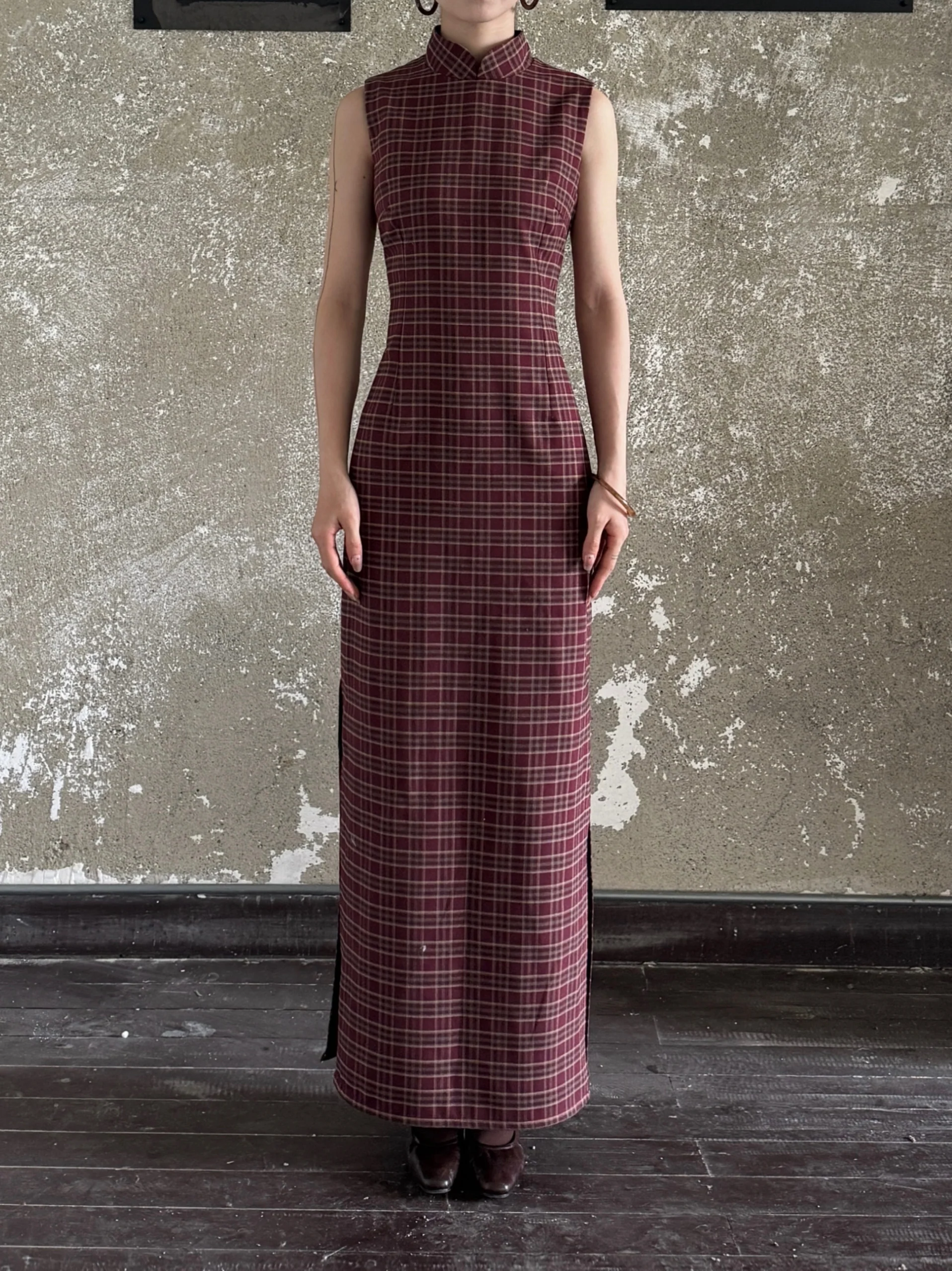 Yan Hong 砚红 Red Ink Modernized Plaid Flannel Sleeveless Qipao