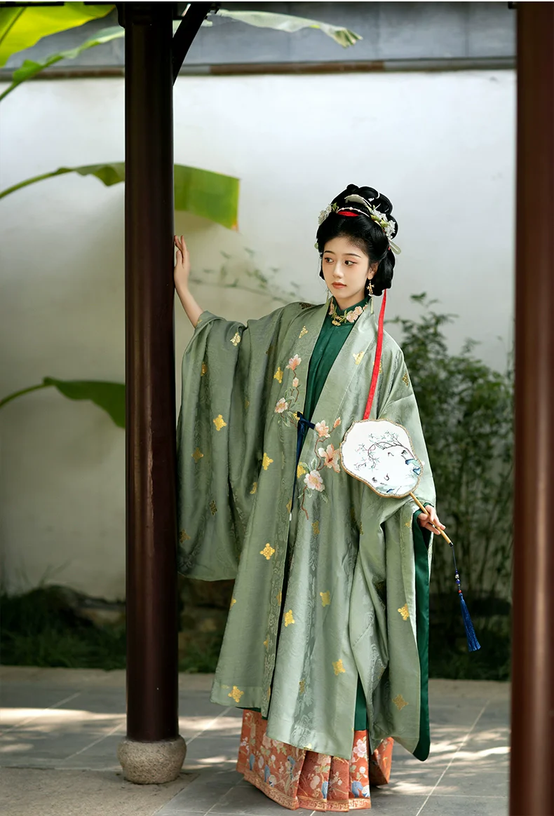 The lighter fabrics make it ideal for wearing during the warmer spring or summer seasons. Complete the look with the elegant Mamian Skirt 马面裙 adorned with crane brocades, symbols of longevity in Chinese culture.
